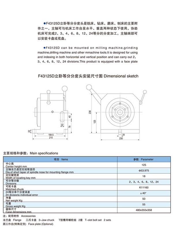 F43125D0型立臥等分分度頭